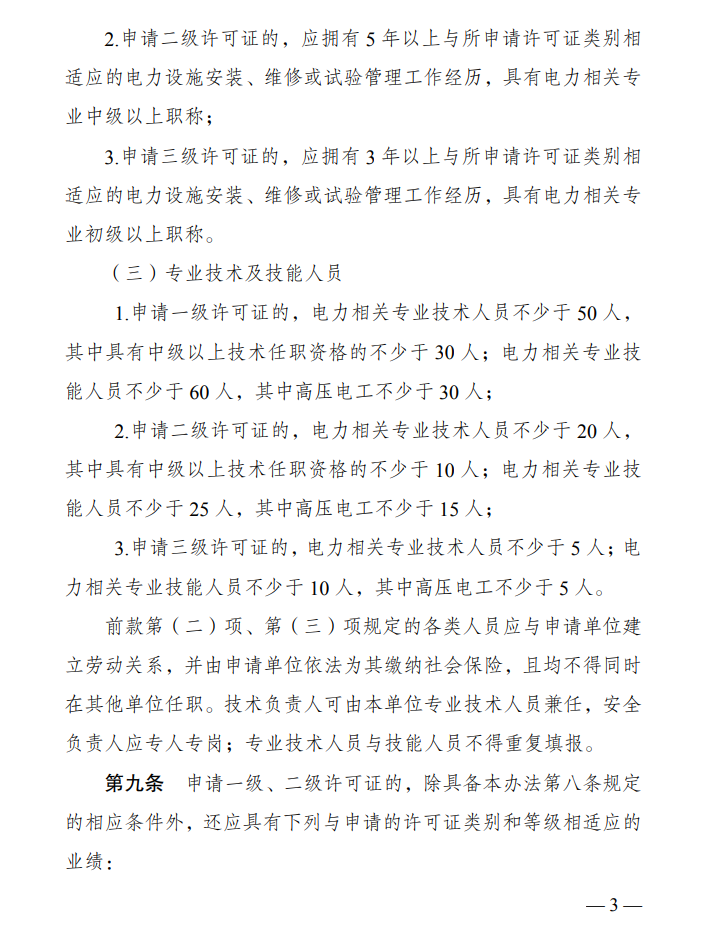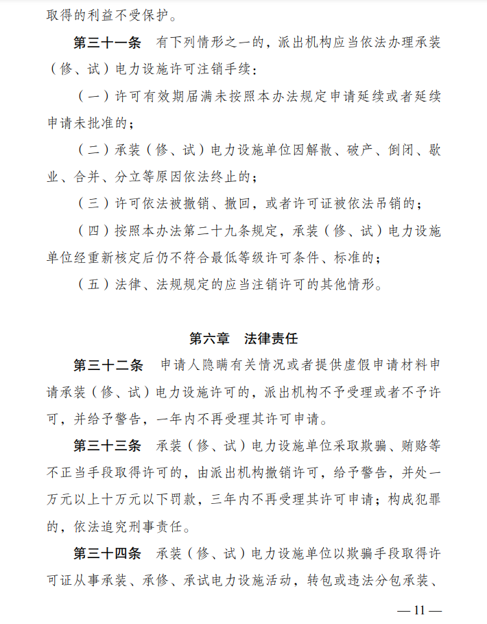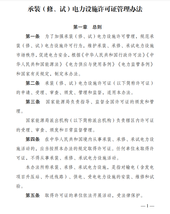 最新公布《承装(修、试)电力设施许可证管理办法》自2025年7月1日起施行。