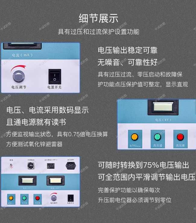 0.75UDC1mA功能按钮,方便氧化锌避雷器试验,精度±(2%±2个字)。
