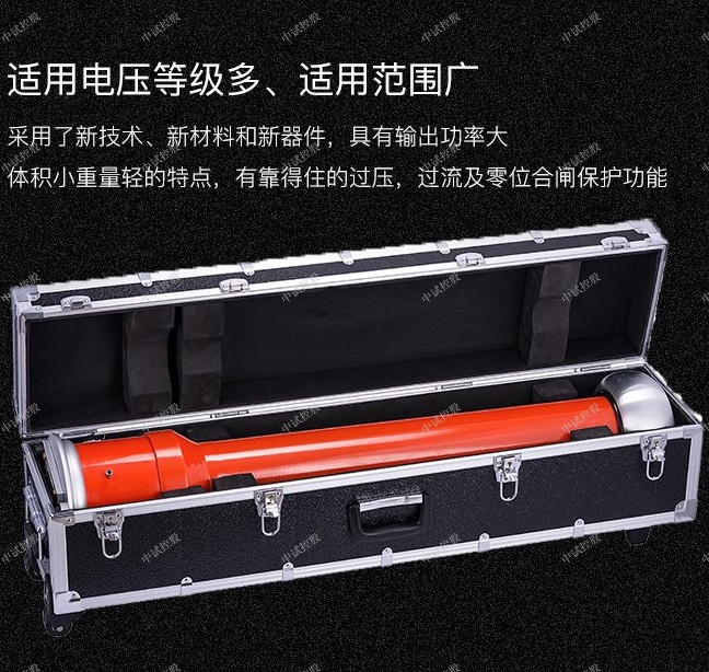 6.4.4 对于氧化锌避雷器等小电容试品,试验完后一般通过机内测压电阻放电,时间很快。而对电缆等大电容试品,试验完后一般要待试品电压自放电至试验电压的20%以下,再通过配套的放电棒进行放电,待试品充分放电后挂好接地线,才允许进行高压引线的拆除和更换接线的工作。