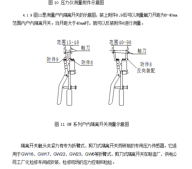 1、高压隔离开关触指压力测试仪广泛应用在开关触头制造厂、高低压开关柜生产厂家以及各种高低压开关和开关柜的运行现场。高压隔离开关触指压力测试仪针对各种高压开关动静触头夹紧力测量(如:梅花触头式高压开关、折臂式隔离开关触头、剪刀式隔离开关触头、转入式"U"形触头隔离开关、户内系列拍合式隔离开关触头)等。