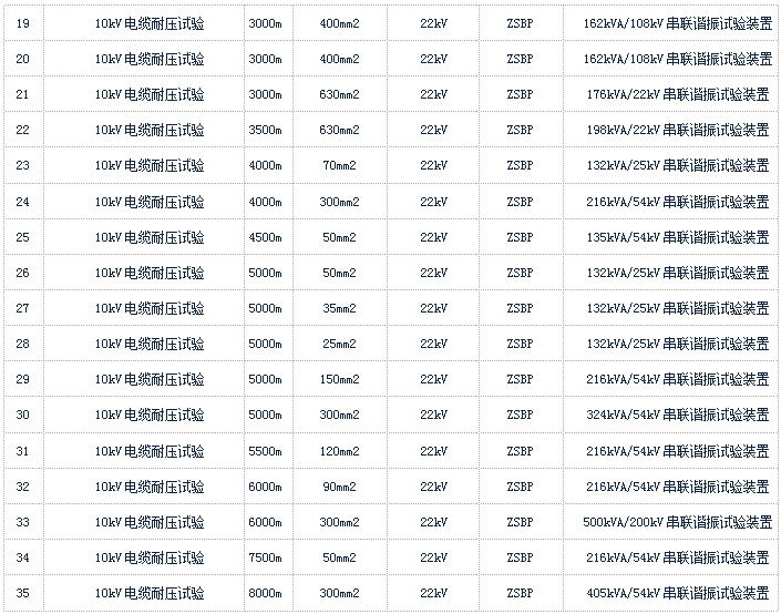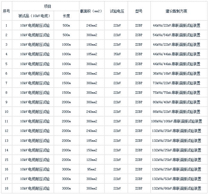 关于可以打电缆交流耐压选型:电缆电压等级(kV)、电缆截面(mm²)、电缆长度(米)