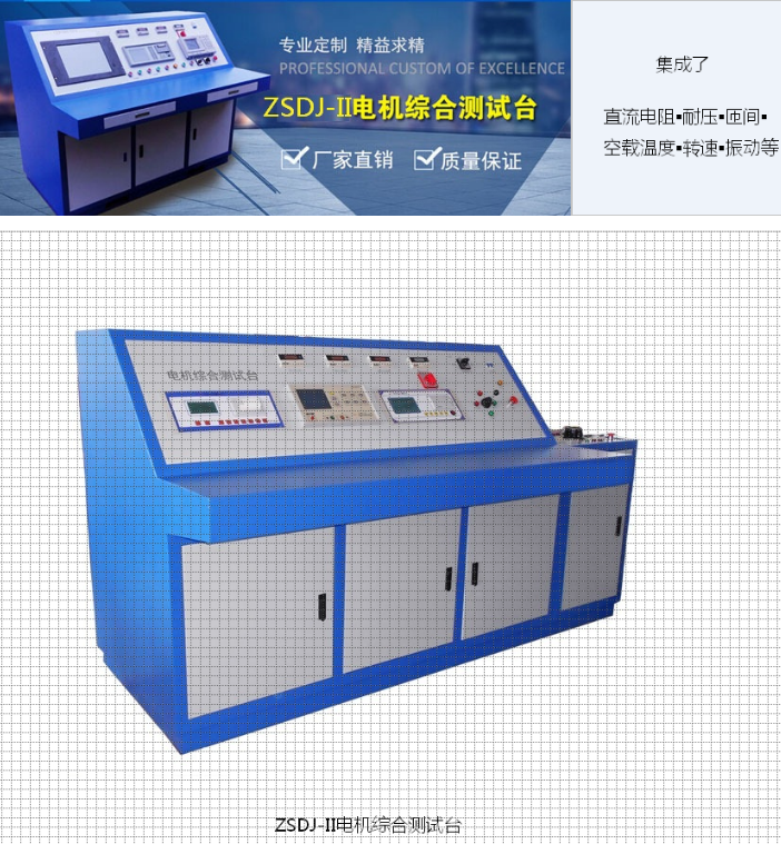 ZSDJ-II智能电机综合测试台由工业计算机、试验电源系统、试验控制系统、传感器和信号调理模块、数据采集硬件和软件、数值运算处理软件、图形显示与操作软件、试验报告生成、波形和测量结果存储打印软件等组成,具有多通道、多功能、测量精确等特点,全行业处于领先水平!