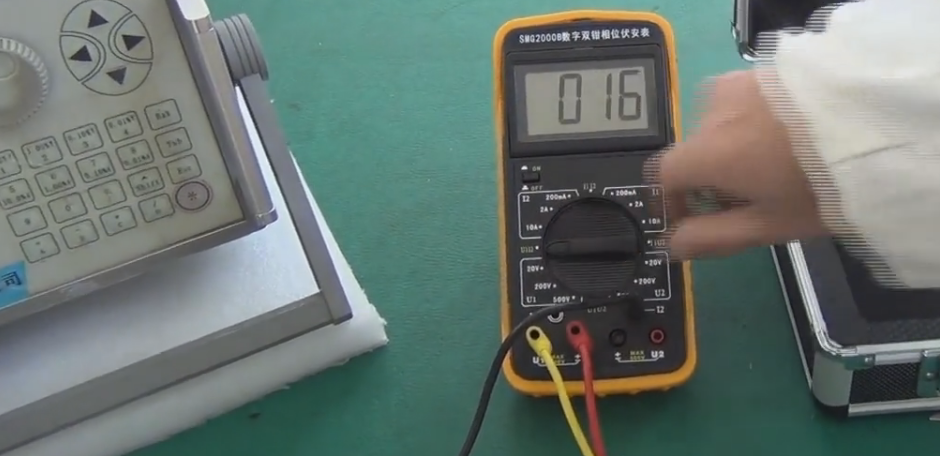 旋转开关置U1U2位置。将A相接U1插孔,B相接U2插孔,零线同时接入两输入回路的±插孔。若相位显示为120°左右,则为正相序;若相位显示为240°左右,则为负相序。