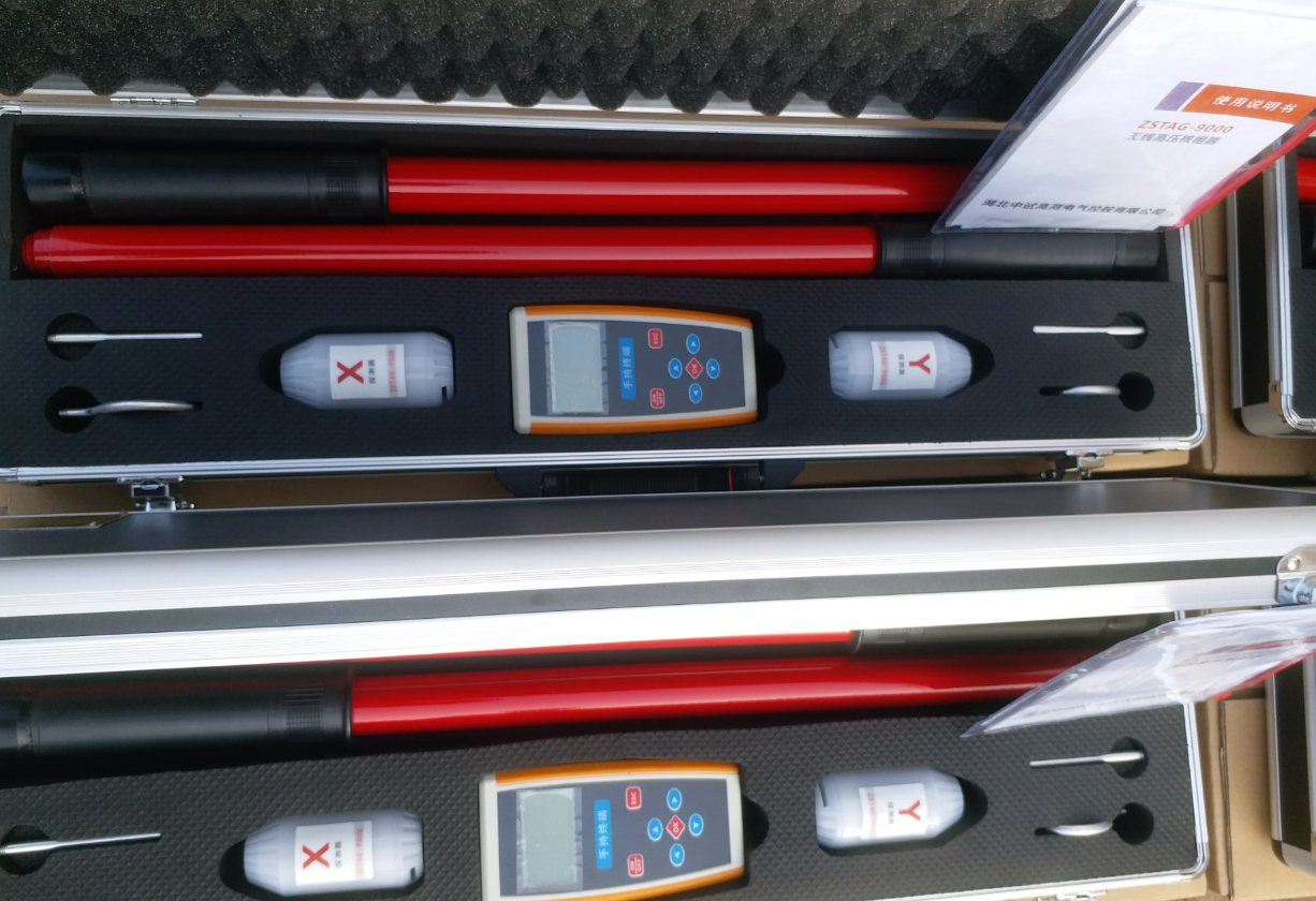 无线高压核相器结构原理:包括两个在电气上互不相连的组件装置上装有的电极可与被测导线相连一只橙色的发射器其电极的形状为钩形以便挂到导线上,另外一只黄色的为接收器其电极的形状为丫形便于接触导线这些电极均作为发射与接收信号的天线之用,发射器与接收器的端部均应与绝缘操作杆相接,发射器具有双重作用并按一定的顺序发挥功能
