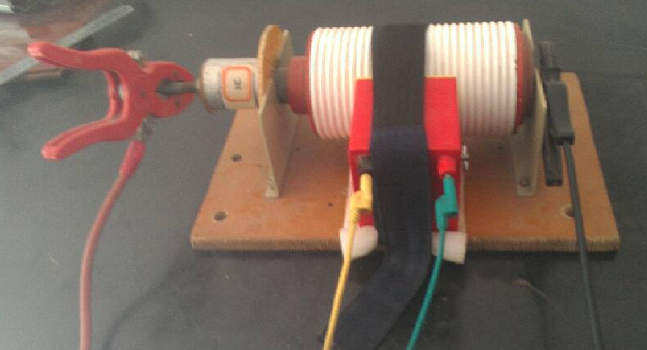 将面板上的磁控电流输出端通过导线与磁控线圈相连,使灭弧室触头至于分状态,(线圈套于灭弧室外)将高压线和信号输入线分别接灭弧室的动端与静端。注意,高压线应悬空。(如上图所示)