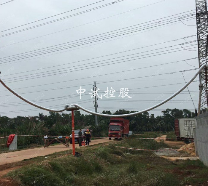 (3)管母线吊装时,为防止起吊时线变形,大部分情况下采用多点起吊法。具体是先把管母吊至适当的高度,再把悬挂绝缘子串拉至线夹位置装配。