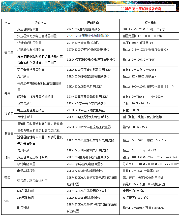 10KV高压变配电系统电力设备预防性试验设备