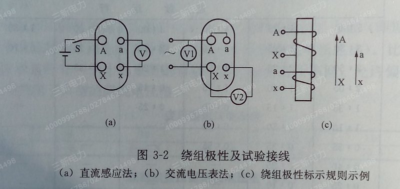(2)交流电压表法。如图3—2(b)所示,高压侧加压,若V2小于V,则A,a为减极性。
