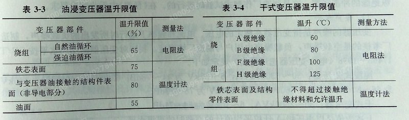 这是绕组对空气的平均温升。它是绕组对油的平均温升和油对空气的平均温升之和(对油浸变压器而言),表3—3、表3—4列出了变压器的温升限值。