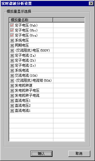 实时谐波分析以连续两个上升过零点界定一个基波周波,如果高次谐波含有率过高,使得一个基波周期内出现多个上升过零点,则程序不能正确地识别基波,此时的谐波分析功能失效了。对于这种信号,请使用“波形类试验”录制一段波形数据,再使用该试验的谐波分析功能,手工界定基波进行谐波分析。
