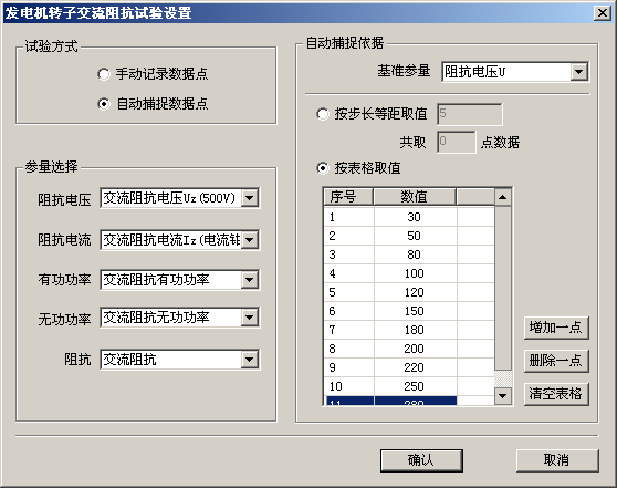 按步长等距取值:输入步长、点数,在基准参量上升过程中,程序自动录制数据点