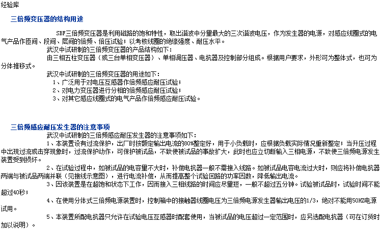 感应电压三倍频发生器也许在生活当中并不常见,但是对于某一些人的工作来说,这些东西都是必不可缺少的东西,感应电压三倍频发生器厂家会生产很多的仪器,他们专业的制造,还有很完美的价格,也有很多人带,可以免费咨询他们关于这方面的信息。