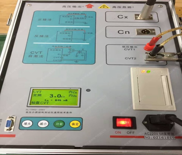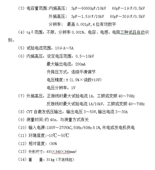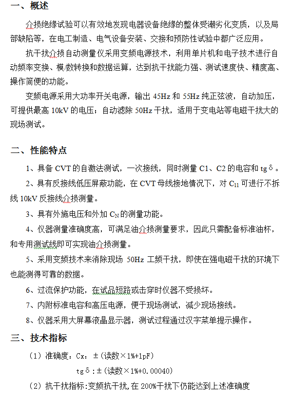 高压介质损耗测试装置1、介质测量精度为1% 2、电容量精度为0.5% 3、抗干扰变频