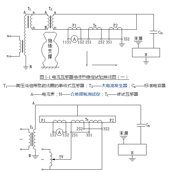 A——电流表;H——介质损耗测试仪;Tt——被试互感器