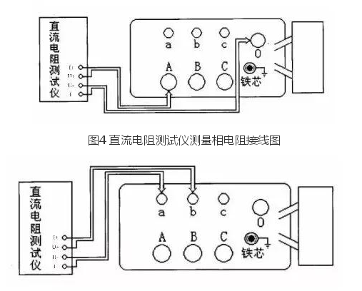 5、无励磁调压变压器改变分接位置后、有载调压变压器分接开关检修后及更换套管后或者打开套管从事相关检修工作后,应测量绕组电阻。