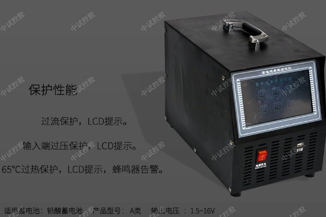 保护性能 ??电池测试电压过压保护,欠压停机,过流保护,反接保护,65℃过温保护,并具有LCD提示,蜂鸣器告警