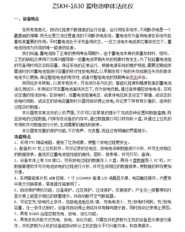 ZSKH-1630蓄电池单体活化仪规格参数