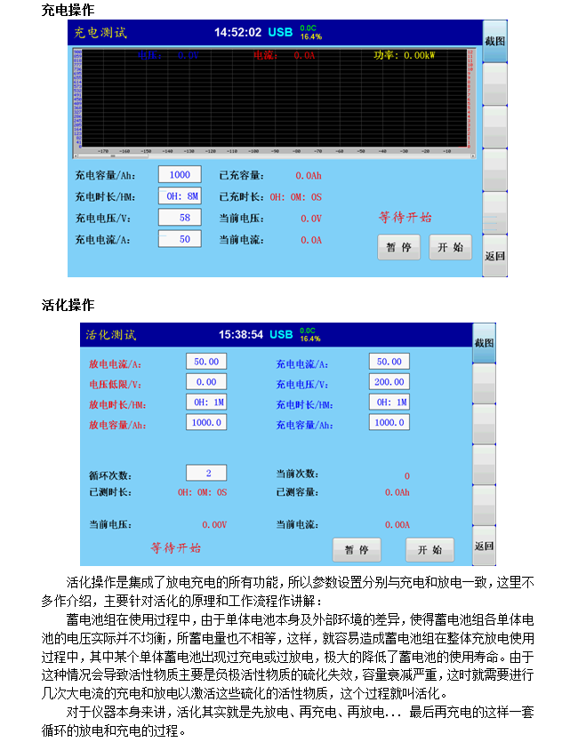 电池充电、电池放电、电池活化、电池内阻测试、电池性能测