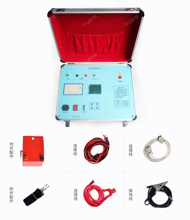 真空开关真空度测试仪:华中科技大学从九十年代初开始研究真空开关灭弧室真空度现场的定量检测,经过近十年的努力,于一九九九年获得专利,并实现了现场不拆卸定量测量。有了定量测量的手段,不仅可以测量真空开关真空度是否在正常范围内,同时更重要的是,对某些泄漏速度较快的真空开关,通过历年测量结果相比较,可以大致推断它的寿命,真正起到预防意外事故发生的目的。由“全国高压开关设备标准化技术委员会”制定的JB8738—1998《3.6—40.5KV交流高压开关用真空灭弧室》中规定“内部气体压力测量及允许储存期检查”是生产和使用高压开关设备真空灭弧室的单位的试验必做项目,并规定灭弧室的允许储存期为20年。真空灭弧室内部气体压力应低于6.6×10-2Pa。