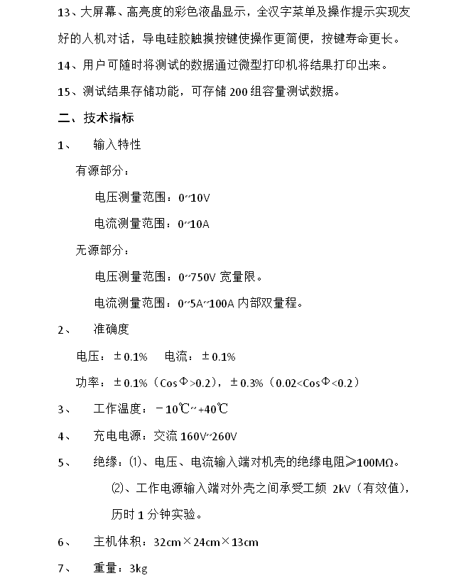 5、 绝缘:⑴、电压、电流输入端对机壳的绝缘电阻≥100M?。
