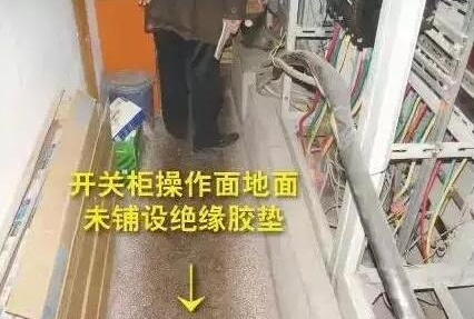 2开关柜操作地面未铺设绝缘胶垫隐患危害:易导致操作、维修人员在施工过程中接地从而发生触电事故。