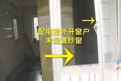 3配电室出入口无挡板。隐患危害:当遭遇内涝情况时,挡板能够很好的防止水流进入配电室。同时,挡板也能很好的隔绝老鼠等小动物的进入,避免动物啃咬造成的漏电和短路事故。