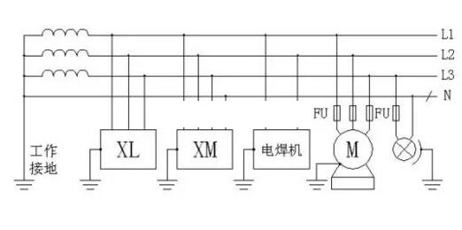 1)当电气设备的金属外壳带电(相线碰壳或设备绝缘损坏而漏电)时,由于有接地保护,可以大大减少触电的危险性。但是,低压断路器(自动开关)不一定能跳闸,造成漏电设备的外壳对地电压高于安全电压,属于危险电压。 2)当漏电电流比较小时,即使有熔断器也不一定能熔断,所以还需要漏电保护器作保护,困此系统难以推广。 3)系统接地装置耗用钢材多,而且难以回收、费工时、费料。现在有的建筑单位是采用系统,施工单位借用其电源作临时用电时,应用一条专用保护线,以减少需接地装置钢材用量,如图2所示。