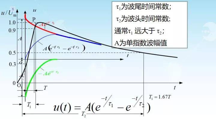 过程:首先C1充电,然后合上开关,C1经R1向C2充电,形成波头同时C1和C2经过电阻R2放电,形成波尾。C1>>C2,C2和R1为波头电容和电阻,C1和R2为波尾电容和电阻。