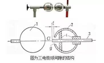 1-铜球,2-端部有孔的铜球,3-触发电极,4-瓷、胶木等绝缘材料