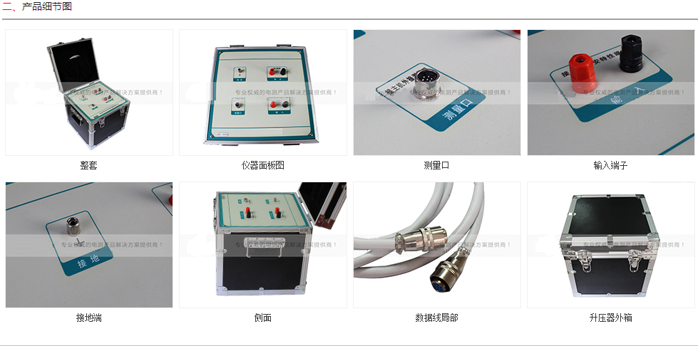 3 、可选配件包括外接升压器,外接升流器,外接调压器,外接升压器最高电压可升至2000V,3A,外接升流器可升至1000A,外接调压器最大输出可达1500V,20A,采用外接升压器时,最高可做500KV等级1A电流互感器的伏安特性试验。