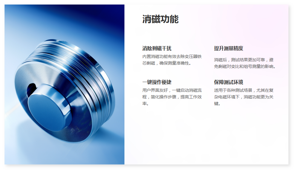 7·具备消磁功能,可以消除变压器铁芯中的剩磁,避免因剩磁对测试结果造成影响。