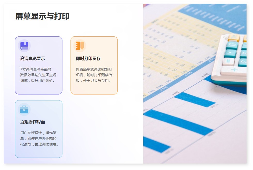 10·采用7寸高清真彩液晶屏,显示数据效果和矢量图效果直观细腻。