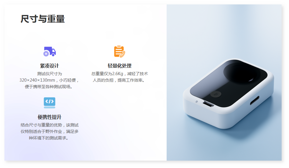 15·内部配备高容量锂离子充电电池,现场无需任何电源即可完成测试工作,一次充满可以连续进行1000次以上的测量。