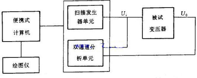 首先,计算机发出命令,让扫描发生器单元输出一系列频率的正弦波电压,加到被试变压器上;同时让双通道分析单元分析、处理Ui、Uo信号,并传送到计算机存贮起来;待试验数据采集完毕后,计算机判断被试变压器有无绕组变形,并可以屏幕显示或绘制被试变压器频响特性曲线。