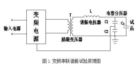 通过调节变频电源的输出频率,使回路处于串联谐振状态;调节变频电源的输出电压幅值,使试品上的高电压达到试验电压的要求。