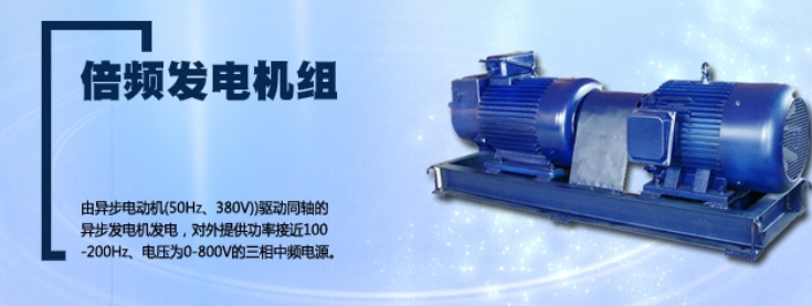 倍频机组又称倍频发电机组、也有人称为高频发电机组,主要针对变压器感应耐压试验及局部放电试验而设计。由异步电动机(50Hz、380V))驱动同轴的异步发电机发电,对外提供功率接近100-200Hz、电压为0-800V的三相中频电源。