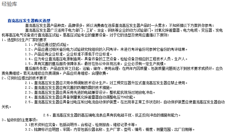 根据国家电力承装、承修、承试类五级电力设施许可证所需施工机具设备选型中要求,五级承试设备(10kV)及电力试验设备清单所列,常用承试仪器仪表部分需要配制测量DC60kV/2mA一体式直流高压发生器。中试控股向需要申请五级承试资质的企事业单位推荐数字双钳相位伏安表型号为ZSZGF智能直流高压发生器。