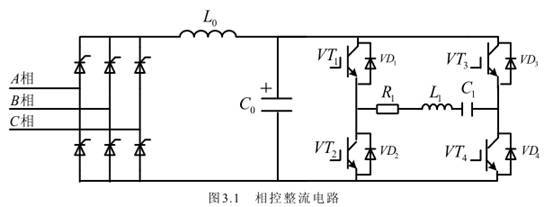 三相全控桥整流方式是通过控制构成全控整流桥的六只晶闸管的通断来调节直流部分的电压,通过调节该输出直流电压来调节感应加热电源输出的功率。