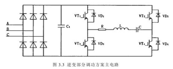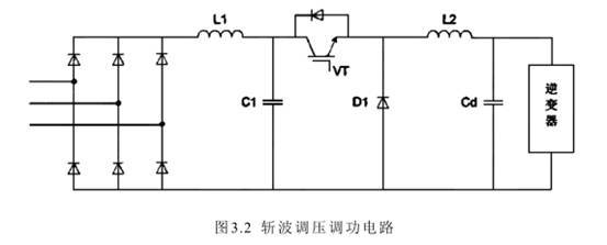 ②直流斩波调功方式:整流由六个二极管实现不控整流,直流部分增加一个斩控电路,其原理图如图3.2所示。