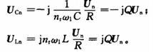 当发生串联谐振时,在a、b端口的Un与In相位 相同,电感电压向量ULn与电容电压向量Ucn大小相 等,方向相反,相互抵消,所以串联谐振被称为电压谐振。URn为电阻电压向量;uxn为电抗电压向量;w1为基波角频率。
