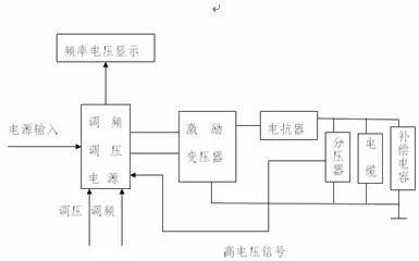 试验装置由调频电源、激励变压器、谐振电抗器和电容分压器组成。被试品的电容与电抗器构成串联谐振回路,分压器并联在被试电缆上,用于测量被试电缆的谐振电压值,并作为过电压保护信号。调频调压的功率经激励变压器耦合给串联谐振回路,提供串联谐振的激励功率。