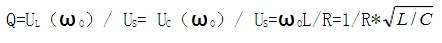电路发生谐振时,电感上的电压(或电容上的电压)与激励电压之比称为电路的品质因数Q,即: