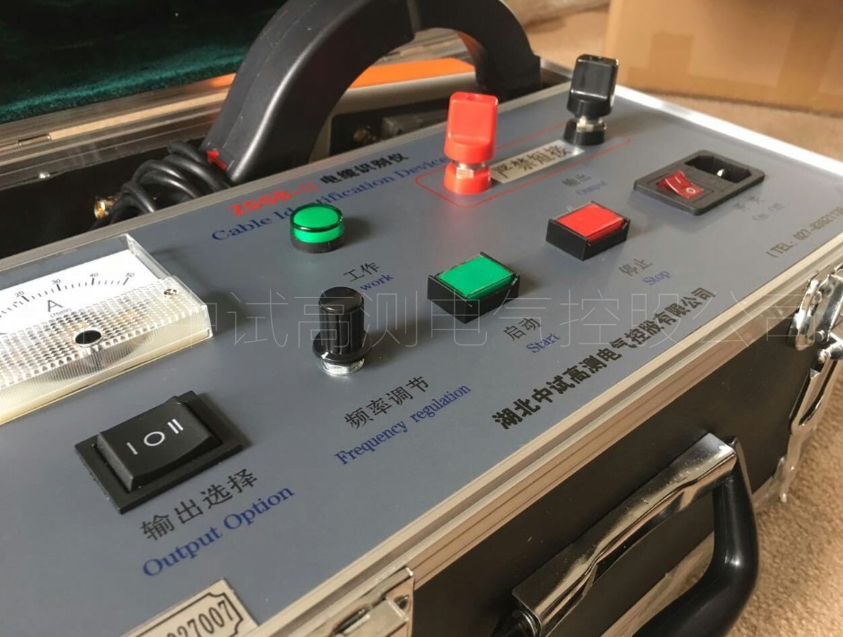 带电电缆识别仪作用是带电识别,在识别点,用接收卡钳B对各条电缆进行识别。在进行识别时,一定要将接收卡钳上的箭头始终指向电缆的终端方向,逐条电缆进行卡测。在被识别电缆上,接收机电流表头指针一定是向右偏转,同时声光报警提示。而在其余电缆上,接收机电流表头指针一定是向左偏转,没有声光报警提示。接收机电流表头指针向右偏转,同时声光报警提示的,就是要寻找和识别的那条电缆。