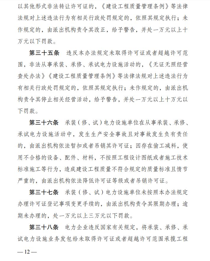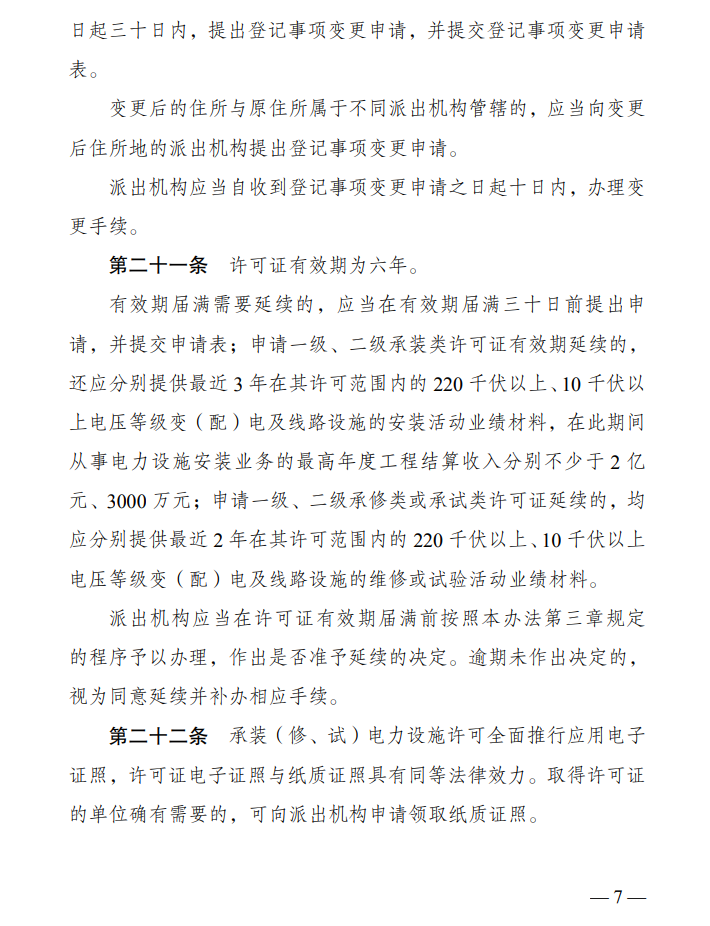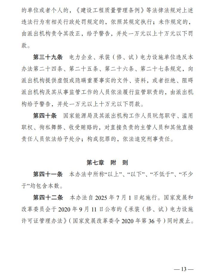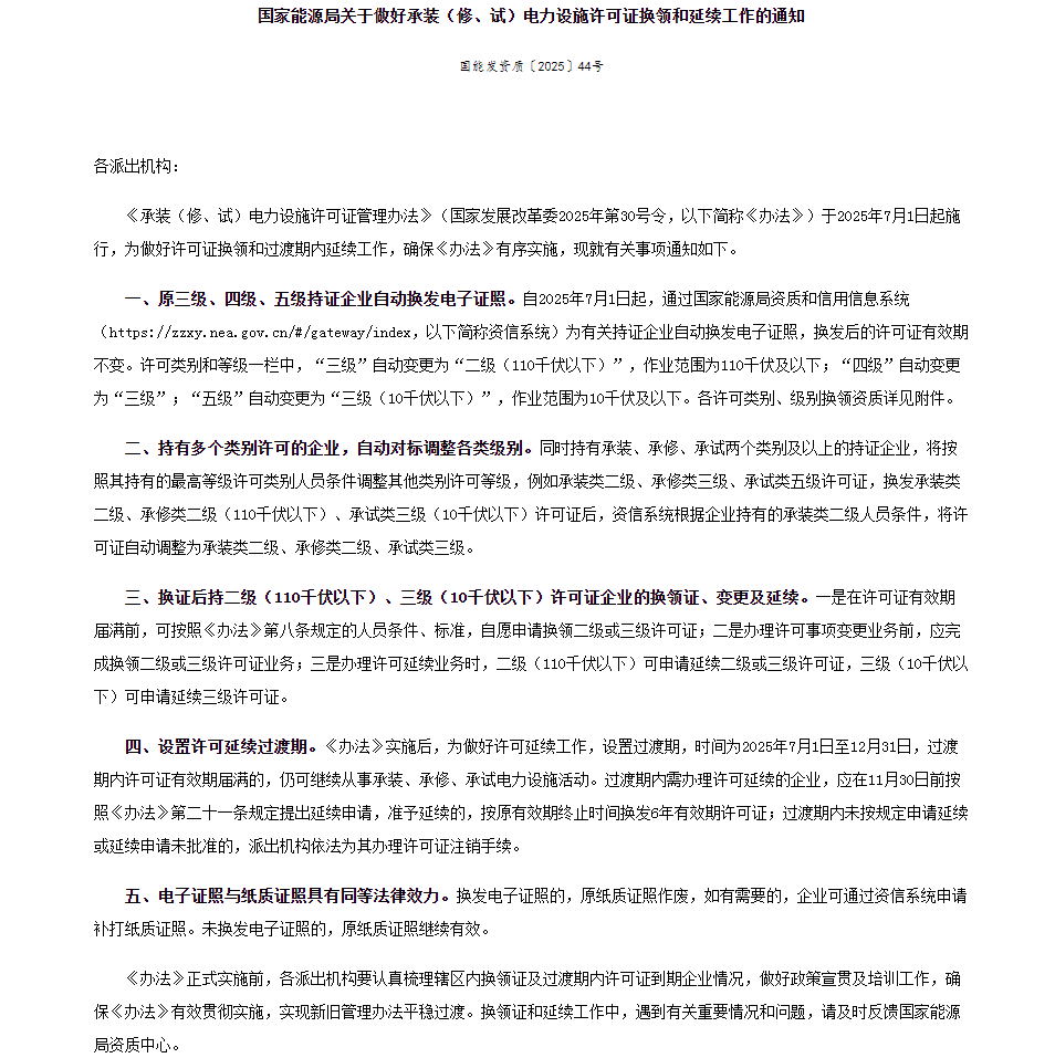 最新公布《承装(修、试)电力设施许可证管理办法》自2025年7月1日起施行。