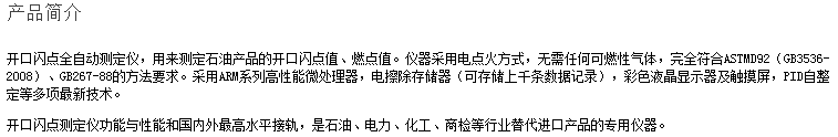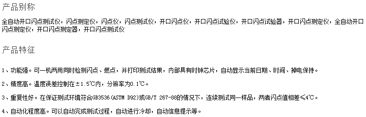 开口闪点测定仪厂家开口闪点测定仪和闭口闪点测定仪原理性质没有太大的差异,都是用于测定石油产品的开口闪点值,其采用新型高速数字信号处理器,整个测定过程中精度高,一台主机可以同时控制多个样品的测试,节省时间,当然对于大气压强自动检测有着较好的效果。