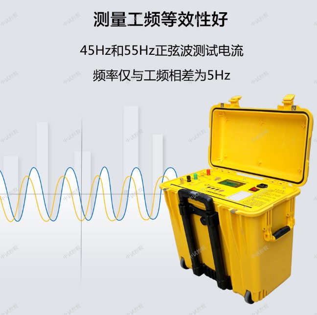 1、测量的工频等效性好。测试电流波形为正弦波,频率仅与工频相差为5Hz,使用45Hz 和55Hz 两种频率进行测量。