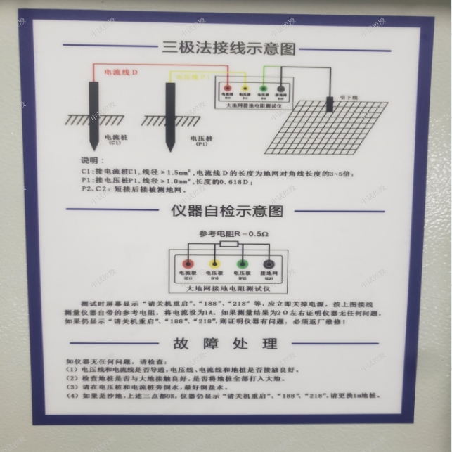 2、电流测试线与电压测试线的长度比为1:0.618,电流测试线的长度应是地网对角线的4~5倍。