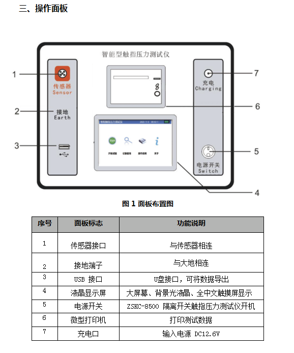 7、充电方式:专用充电器接面板锂电池充电接口充电。