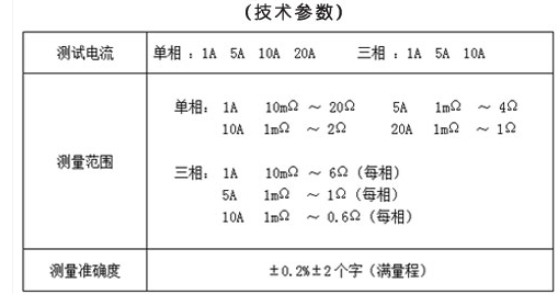 三相直流电阻技术参数是作为选择直流电阻测试仪的重要技术指标,包括测试电流,测量范围和准确度,如下所示: