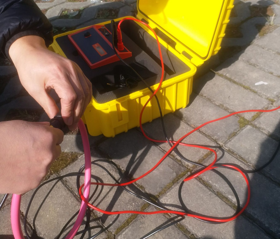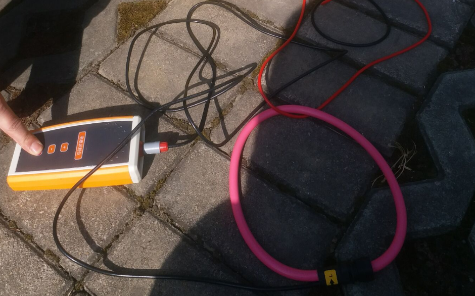 图中有两根电缆,1号电缆是我们要识别的电缆,要识别电缆的输出电流为20A,返回电流通过地钉经大地回到发生器。